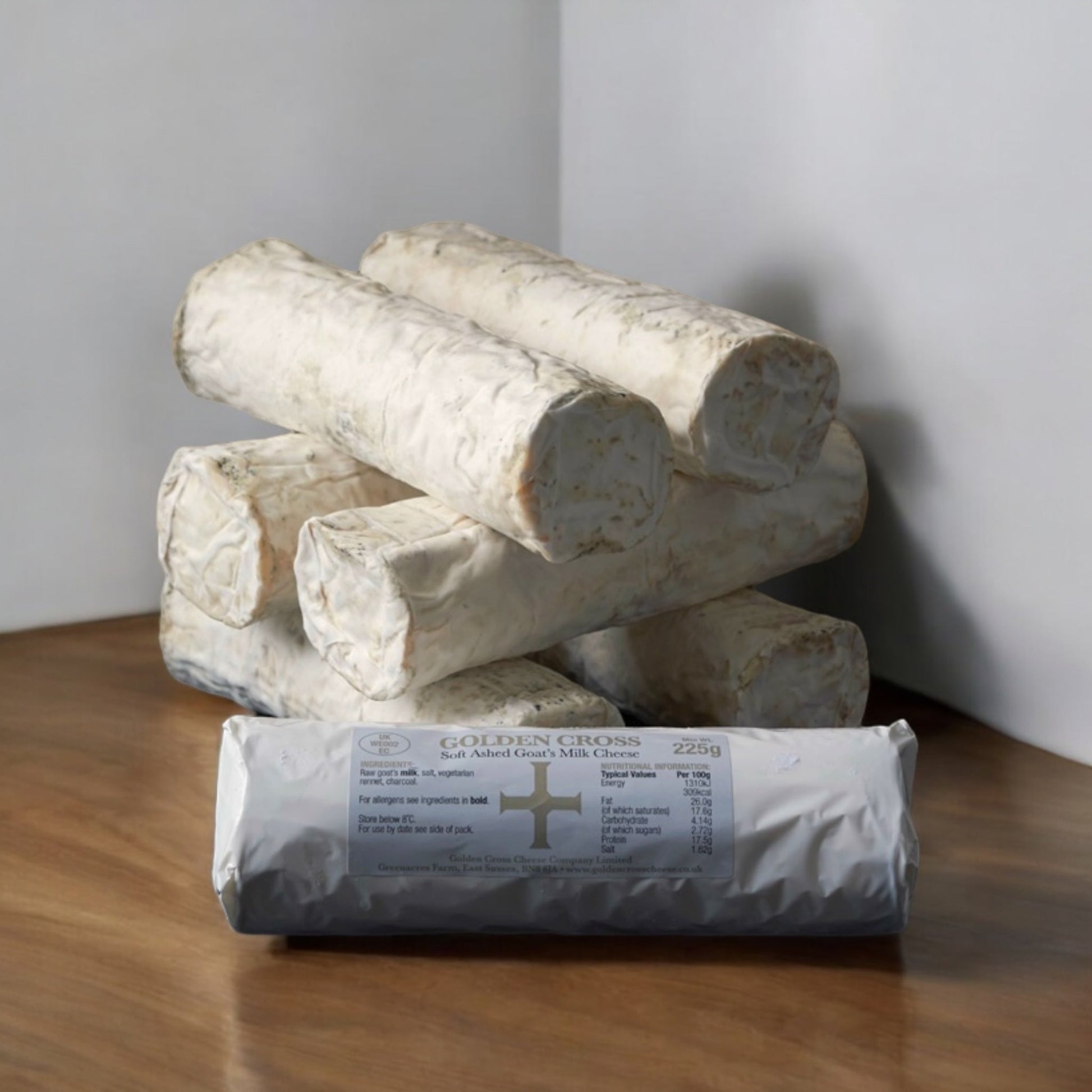 Golden Cross is made by Kevin & Alison Blunt of Golden Cross cheese in East Sussex. The farm is home to a herd of 230 Goats who are milked all year round producing the milk for this delicious, handmade, award winning cheese.