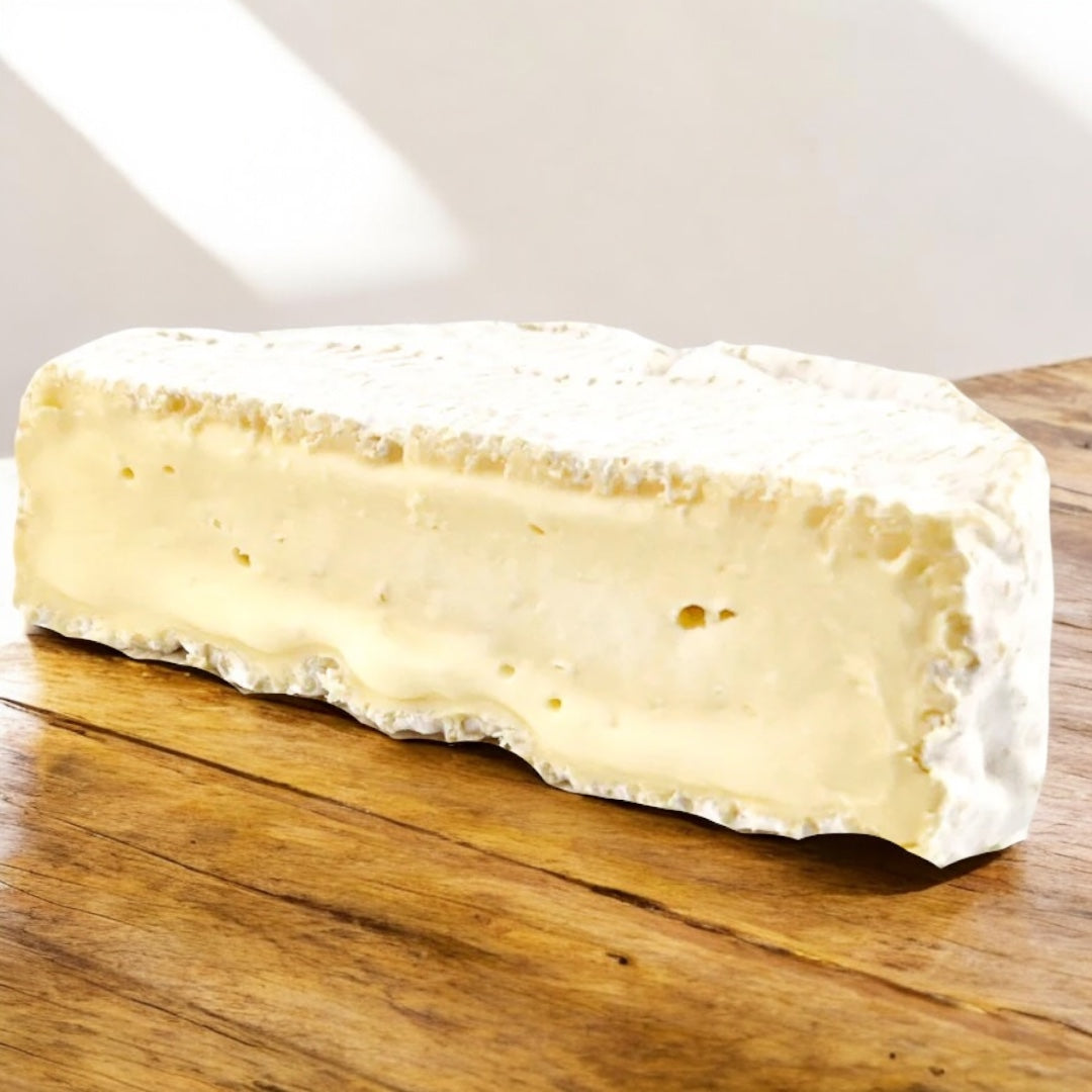 Edible white rind, rich creamy paste with mild mushroom and grass undertones and a silky texture that melts in your mouth when ripe.