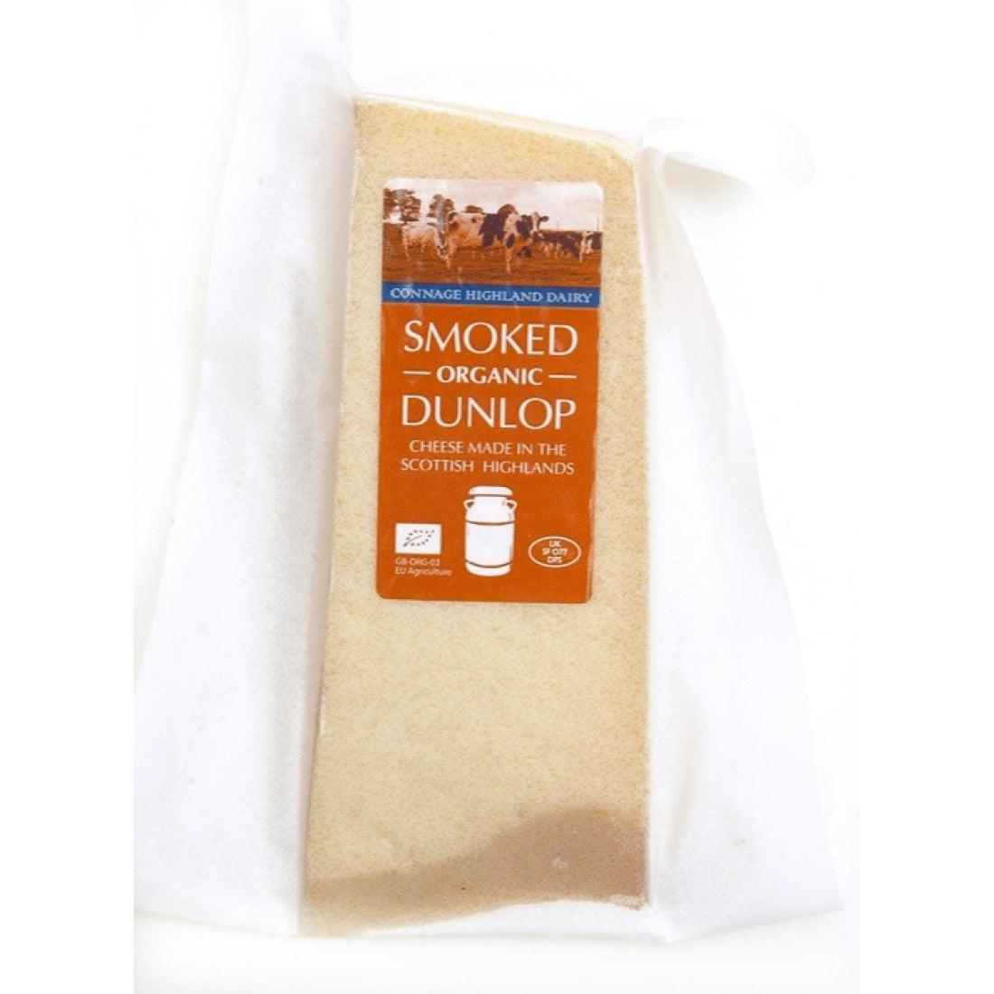 Smoked Dunlop, is a delicious dimension of our Dunlop Scottish Cheddar cheese and traditionally smoked using oak whisky barrel shavings. The smoking process is completed at Connage beside the dairy by Callum and Monika.